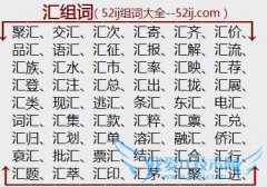 组词大全详解[汇组词]如:聚汇、交汇、汇次、汇寄、汇齐、汇价、品汇、语汇、汇征、汇报、汇解、汇流、汇族、汇水、汇市、汇率、汇映、汇荐、汇登、汇注、汇总、汇出...