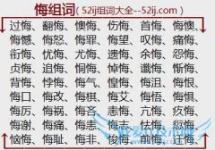 组词大全详解[悔组词]如:过悔、翻悔、懊悔、伤悔、首悔、悔懊、悔憾、悔怒、悔罪、悔望、叹悔、痛悔、衔悔、忧悔、尤悔、遗悔、余悔、怨悔、贞悔、追悔、恫悔、悼悔...