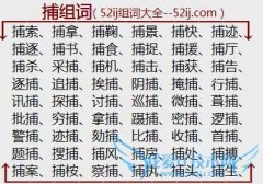 组词大全详解[捕组词]如:捕索、捕拿、捕鞠、捕景、捕快、捕迹、捕逐、捕书、捕食、捕捉、捕援、捕厅、捕杀、采捕、捕机、捕击、捕获、捕告、逐捕、追捕、挨捕、阴捕...