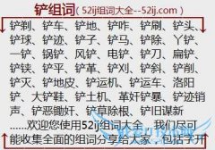 组词大全详解[铲组词]如:铲剃、铲车、铲地、铲咋、铲刷、铲头、铲球、铲迹、铲子、铲马、铲除、丫铲、一铲、锅铲、风铲、电铲、铲刀、扁铲、铲铗、铲平、铲革、铲刈...