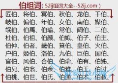 组词大全详解[伯组词]如:匠伯、将伯、冥伯、秋伯、龙伯、千伯、岐伯、偏伯、年伯、女伯、南伯、媒伯、氓伯、伯禹、伯瑜、常伯、阏伯、二伯、杜伯、伯祖、伯颜、伯姒...