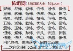 组词大全详解[怖组词]如:疑怖、战怖、恐怖、怕怖、可怖、惧怖、皇怖、骇怖、惭怖、怖遽、怖恐、怖畏、怖惧、怖悸、悲怖、慑怖、危怖、畏怖、五怖、汹怖、眩怖、忧怖...