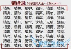 组词大全详解[猜组词]如:猜嫉、猜想、猜妒、猜险、猜拳、猜解、猜测、猜破、猜谜、猜离、猜急、猜斥、猜察、猜觉、猜专、猜虐、猜摹、猜惧、猜毁、猜灯、猜忖、沈猜...