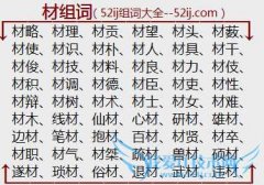 组词大全详解[材组词]如:材略、材理、材贡、材望、材头、材薮、材使、材识、材朴、材人、材具、材干、材俊、材技、材料、材良、材力、材伎、材积、材调、材德、材臣...