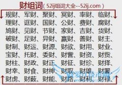 组词大全详解[财组词]如:规财、军财、聚财、冥财、率财、临财、理财、诓财、国财、公财、费财、腐财、鸠财、见财、节财、家财、吉财、货财、破财、足财、异财、赢财...