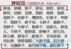 组词大全详解[脖组词]如:脖颈、脖梗、脖子、脖项、脖脐、脖领、脖拐、回脖、顶脖、围脖、窝脖、颈脖、颈脖子、抹脖子、鹰脖色、折脖子、弯脖子、缩脖子、脖子拐、卡...