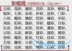 组词大全详解[彩组词]如:日彩、瑞彩、器彩、流彩、龙彩、鳞彩、骏彩、七彩、命彩、妙彩、迷彩、门彩、八彩、蜀彩、精彩、结彩、缣彩、华彩、鸿彩、阳彩、逸彩、异彩...
