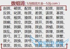 组词大全详解[拨组词]如:剖拨、破拨、配拨、排拨、起拨、那拨、反拨、叱拨、枨拨、差拨、该拨、革拨、勾拨、根拨、撩拨、科拨、截拨、解拨、拨喇、拨拉、拨款、拨开...