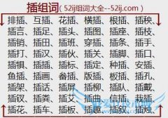 组词大全详解[插组词]如:排插、互插、花插、横插、根插、插秧、插言、插足、插头、插图、插座、插枝、插销、插田、插班、穿插、插条、插手、插打、插汉、插伙、插关...