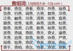 组词大全详解[查组词]如:查拳、查览、查看、查滓、存查、抽查、饬查、钓查、调查、古查、复查、浮查、泛查、翻查、吊查、清查、排查、盘查、票查、密查、蛮查、麻查...