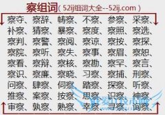 组词大全详解[察组词]如:察夺、察辞、帱察、不察、参察、采察、补察、猜察、暴察、察度、察照、察选、察判、察警、察阅、察谅、察按、察探、察院、察听、察失、察事...