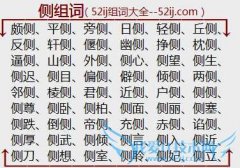 组词大全详解[侧组词]如:颇侧、平侧、旁侧、日侧、轻侧、丘侧、反侧、轩侧、偃侧、幽侧、挣侧、枕侧、逼侧、山侧、外侧、侧心、侧望、侧生、侧迟、侧目、偏侧、僻侧...