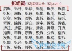 组词大全详解[拆组词]如:启拆、拆开、拆除、拆裂、拆洗、拆股、拆短、崩拆、拆账、拆帐、拆用、拆副、拆穿、密拆、裂拆、离拆、锦拆、解拆、乖拆、除拆、拆白、拆字...