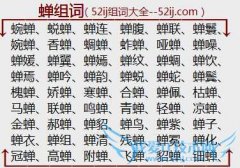 组词大全详解[蝉组词]如:蜿蝉、蜕蝉、蝉连、蝉腹、蝉联、蝉鬟、婉蝉、香蝉、蜩蝉、蚱蝉、哑蝉、蝉噪、蝉媛、蝉翼、蝉嫣、蝉纹、蝉蜩、蝉饮、蝉焉、蝉吟、蝉韵、蝉蜕...