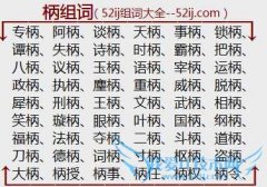 组词大全详解[柄组词]如:专柄、阿柄、谈柄、天柄、事柄、锁柄、谭柄、失柄、诗柄、时柄、霸柄、把柄、八柄、议柄、玉柄、语柄、宰柄、运柄、政柄、执柄、麈柄、重柄...