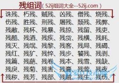 组词大全详解[残组词]如:诛残、朽残、贼残、凶残、僧残、烧残、伤残、胜残、刑残、屠残、颓残、残弊、残敝、残杯、残暴、残掠、残留、残吏、残酷、残酒、残疾、残货...