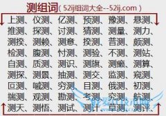 组词大全详解[测组词]如:上测、仪测、亿测、预测、豫测、悬测、推测、探测、讨测、猜测、测量、测力、测揆、测赖、测意、揆测、普测、颇测、检测、腹测、忖测、测验...