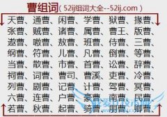 组词大全详解[曹组词]如:天曹、通曹、闲曹、学曹、狱曹、掾曹、张曹、贼曹、诸曹、属曹、曹王、版曹、遨曹、嗷曹、敖曹、班曹、侍曹、三曹、纲曹、符曹、儿曹、凡曹...