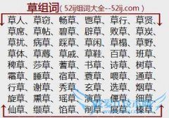 组词大全详解[草组词]如:草人、草窃、畅草、鬯草、草行、草贤、草席、草帖、碧草、辟草、败草、草炭、草扰、病草、踩草、草闲、草榻、草野、草体、草蓐、草戚、草鞋...