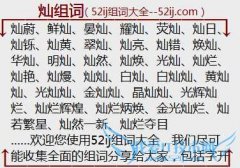 组词大全详解[灿组词]如:灿蔚、鲜灿、晏灿、耀灿、荧灿、灿日、灿铄、灿黄、翠灿、灿亮、灿错、焕灿、华灿、明灿、灿然、灿焕、光灿、灿烂、灿艳、灿熳、灿灿、白灿...
