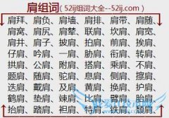 组词大全详解[肩组词]如:肩拜、肩负、肩墙、肩排、肩带、肩随、肩窝、肩尻、肩辇、联肩、坎肩、肩宽、肩井、肩子、披肩、拍肩、前肩、挨肩、仔肩、吟肩、一肩、胁肩...