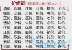 组词大全详解[价组词]如:遣价、起价、评价、让价、擅价、全价、钱价、总价、走价、租价、尊价、足价、正价、涨价、征价、运价、怎价、债价、造价、折价、朱价、重价...