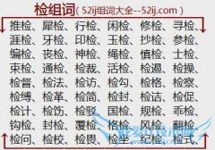 组词大全详解[检组词]如:推检、犀检、行检、闲检、修检、寻检、涯检、牙检、印检、玉检、抄检、参检、编检、丧检、神检、绳检、慎检、士检、束检、通检、检裁、活检...