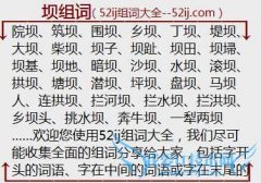 组词大全详解[坝组词]如:院坝、筑坝、围坝、乡坝、丁坝、堤坝、大坝、柴坝、坝子、坝趾、坝田、坝埽、坝基、坝地、暗坝、沙坝、水坝、滚坝、拱坝、塘坝、潜坝、坪坝...