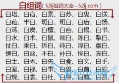 组词大全详解[白组词]如:白塔、白宿、白素、白苏、白叟、白送、白菘、半白、斑白、班白、白唐、白饧、白汤、白炭、白檀、白台、白榻、白书、白水、白术、白鼠、彻白...