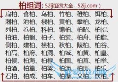 组词大全详解[柏组词]如:扁柏、食柏、乌柏、竹柏、稚柏、饵柏、刺柏、池柏、椒柏、黄柏、攀柏、龙柏、列柏、卷柏、科柏、锦柏、柏昭、柏招、柏油、柏翳、柏子、柏装...