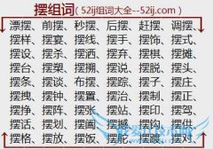 组词大全详解[摆组词]如:漂摆、前摆、秒摆、后摆、赶摆、调摆、摆样、摆宴、摆线、摆手、摆饰、摆式、摆设、摆杀、摆洒、摆弃、摆棋、摆摊、摆台、摆槊、摆搠、摆说...