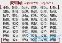 组词大全详解[扳组词]如:牵扳、跻扳、扳子、高扳、错扳、打扳、雠扳、扳扯、扳缠、扳庄、扳陟、扳驳、扳本、推扳、诬扳、仰扳、咬扳、嘱扳、扳指、扳折、扳障、扳罾...