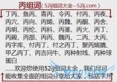 组词大全详解[丙组词]如:丁丙、鱼丙、青丙、令丙、付丙、丙夜、丙穴、丙向、丙烯、丙魏、丙酮、丙舍、丙明、丙纶、丙科、丙鉴、丙火、丙丁、丙殿、丙部、丙丙、魏丙...
