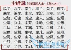 组词大全详解[尘组词]如:风尘、浮尘、奉尘、积尘、黄尘、徽尘、寒尘、滚尘、出尘、尘没、尘览、尘涓、尘路、叨尘、芳尘、尘末、尘尘、尘埋、尘寰、兵尘、尘芥、尘劫...