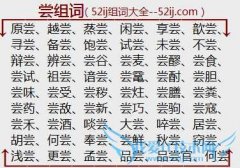 组词大全详解[尝组词]如:原尝、越尝、蒸尝、闲尝、享尝、歆尝、寻尝、备尝、饱尝、试尝、未尝、不尝、辩尝、辨尝、尝谷、尝麦、尝醪、尝食、尝试、祖尝、谙尝、尝鼋...