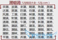 组词大全详解[潮组词]如:亲潮、浪潮、来潮、飓潮、急潮、激潮、还潮、黑潮、防潮、待潮、沓潮、春潮、风潮、工潮、归潮、候潮、海潮、潮波、潮满、射潮、顺潮、送潮...