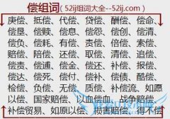 组词大全详解[偿组词]如:庚偿、抵偿、代偿、贷偿、酬偿、偿命、偿垦、偿赎、偿息、偿怨、偿创、偿清、偿负、偿耗、有偿、责偿、倍偿、索偿、赔偿、陪偿、还偿、取偿...