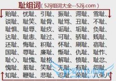 组词大全详解[耻组词]如:贻耻、忧耻、引耻、振耻、滞耻、雪耻、谈耻、耻笑、耻骨、耻骂、丑耻、不耻、耻惧、耻辱、耻疚、诟耻、垢耻、负耻、达耻、耻恚、耻过、可耻...