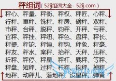 组词大全详解[秤组词]如:秤心、秤量、秤衡、秤权、秤匠、心秤、行秤、重秤、铢秤、秤房、磅秤、双秤、市秤、台秤、脱秤、钧秤、开秤、亏秤、官秤、秤挂、秤纽、秤色...