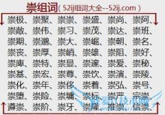 组词大全详解[崇组词]如:崇极、崇聚、崇崇、崇盛、崇尚、崇阿、崇敞、崇伟、崇习、崇茂、崇达、崇班、崇期、崇邈、崇大、崇崛、崇朝、崇名、崇丧、崇厚、崇峭、崇雄...