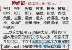 组词大全详解[橙组词]如:橙红、橙色、橙椒、橙圃、橙皮、橙蟹、橙丝、橙丁、橙子、梯橙、甜橙、香橙、黄橙、金橙、橙黄、橙实、黄橙橙、给客橙、橙橘户、橙黄桔绿、...
