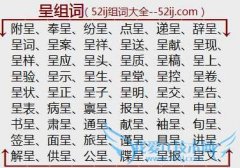 组词大全详解[呈组词]如:附呈、奉呈、纷呈、点呈、递呈、辞呈、呈词、呈案、呈祥、呈送、呈献、呈现、呈样、呈应、呈头、呈质、呈稿、呈上、呈验、呈示、呈生、呈堂...