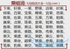 组词大全详解[乘组词]如:下乘、轩乘、一乘、野乘、诗乘、时乘、帅乘、百乘、宝乘、稗乘、宜乘、邑乘、败乘、伍乘、托乘、五乘、万乘、相乘、真乘、贞乘、珠乘、衷乘...