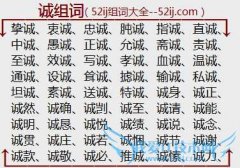组词大全详解[诚组词]如:挚诚、衷诚、忠诚、肫诚、指诚、直诚、中诚、愚诚、正诚、允诚、斋诚、责诚、至诚、效诚、写诚、孝诚、血诚、温诚、通诚、设诚、耸诚、摅诚...