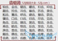 组词大全详解[齿组词]如:驹齿、金齿、锯齿、嚼齿、扣齿、叩齿、踞齿、拉齿、冷齿、眷齿、历齿、隶齿、豁齿、戛齿、哜齿、建齿、慧齿、获齿、骥齿、口齿、臼齿、旧齿...