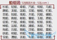 组词大全详解[船组词]如:杉船、轻船、牵船、汽船、绮船、马船、蹶船、龙船、泷船、买船、楼船、栏船、苦船、陆船、蛮船、木船、民船、碾船、炮船、跑船、邮船、罾船...