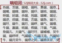 组词大全详解[喘组词]如:热喘、发喘、喘嘘、喘鸣、惫喘、喘息、喘喝、喘喙、喘呀、喘吓、喘咳、喘喘、呀喘、延喘、余喘、残喘、喘嗽、喘证、喘逆、痰喘、息喘、言喘...