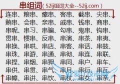组词大全详解[串组词]如:连串、粮串、瘰串、客串、截串、尖串、贿串、会串、亲串、戚串、钱串、商串、串昵、串习、串骗、勾串、鬼串、钩串、贯串、惯串、反串、串演...