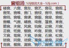组词大全详解[窗组词]如:楼窗、六窗、窗友、窗艺、窗花、窗阁、窗笼、窗帷、窗门、窗棂、窗帘、窗槛、窗绡、窗蟾、窗课、窗眼、窗扉、窗板、窗幔、气窗、晴窗、绮窗...
