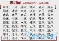 组词大全详解[床组词]如:甲床、击床、擦床、禅床、剥床、厕床、蹦床、冰床、半床、板床、床母、床敷、床帏、床罩、床垠、床衽、床屏、镗床、松床、书床、山床、蛇床...